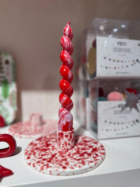 Porzellan Kerzenhalter - rot/weiß gesprenkelt