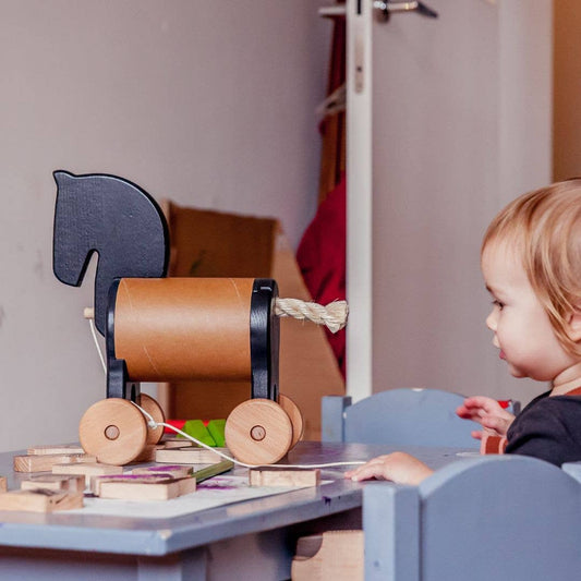 Holzspielzeug-Safebox auf Rädern - Katze