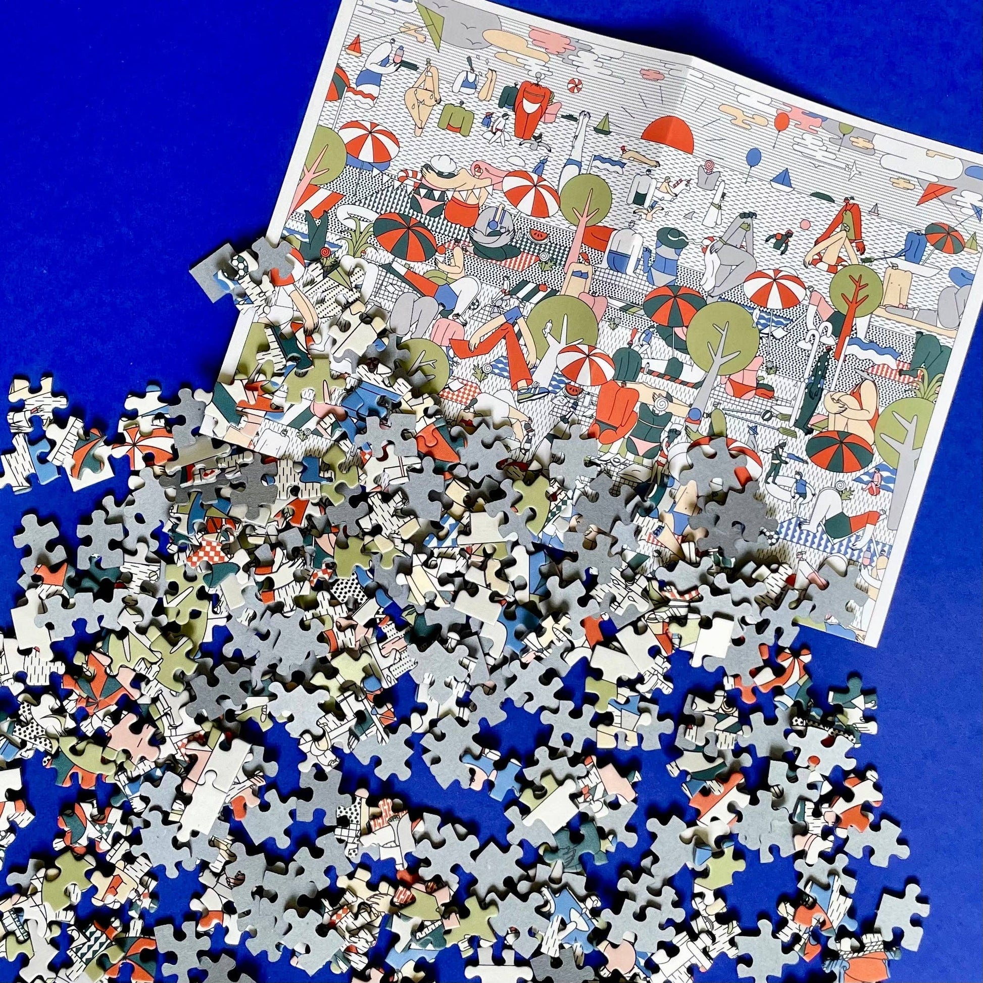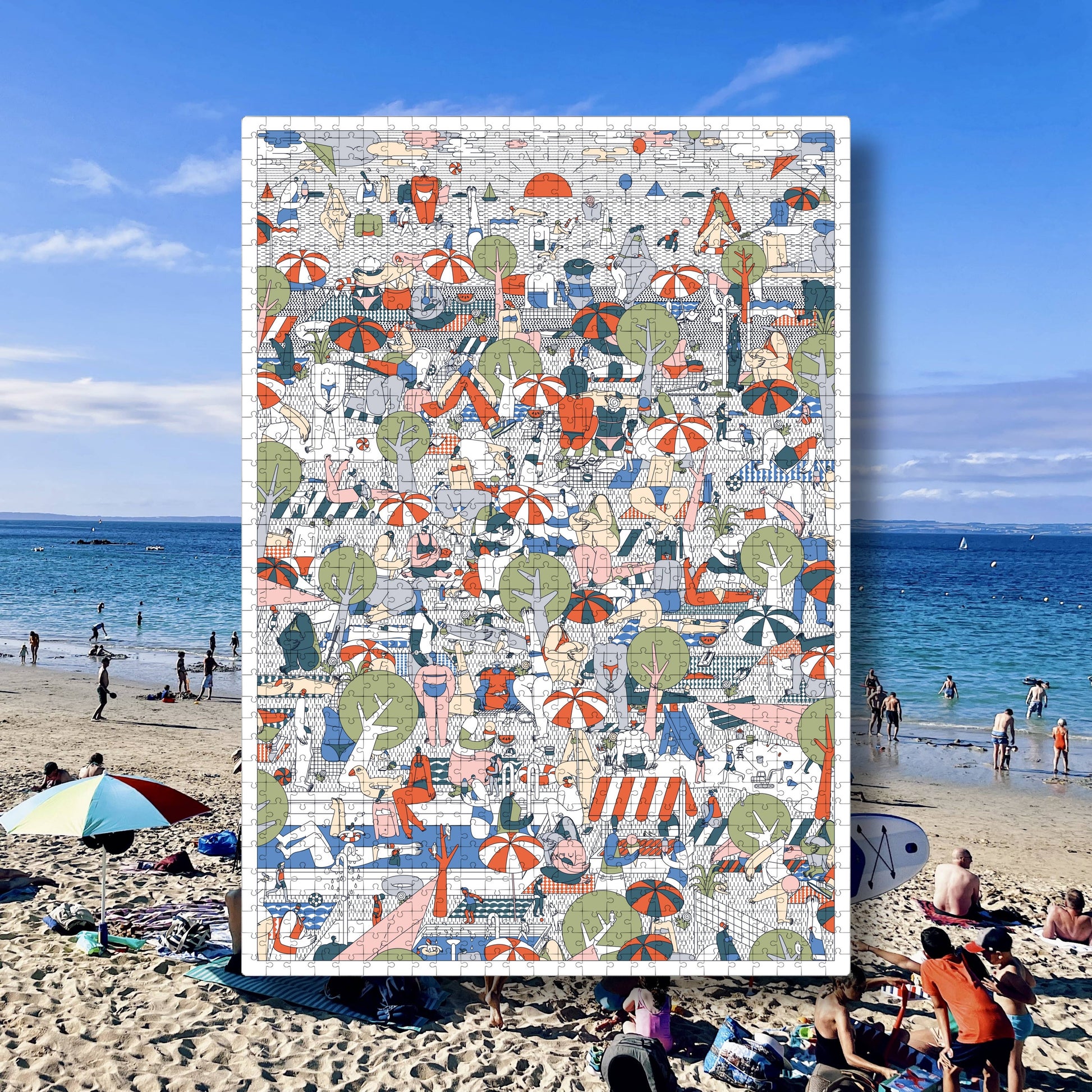 Entdecke "Beach" – ein wunderschönes 1000-Teile-Puzzle von Anna-Lisa Schneeberger in Zusammenarbeit mit SUPPORT YOUR LOCAL ARTIST.CH. Mit den Maßen 68 x 48 cm bietet es dir stundenlange Entspannung und Knobelspaß. Das Puzzle wird ressourcenschonend und fair in Deutschland hergestellt und trägt das Zertifikat für Klimaneutralität. Die nachhaltige Verpackung aus Recycling-Pappe, das beiliegende A3-Poster als Vorlage und die wiederverwendbare Papiertasche machen es komplett plastikfrei. Perfekt zum Selbstbehalten oder Weitergeben – mit unserem praktischen Puzzle Reisepass!
