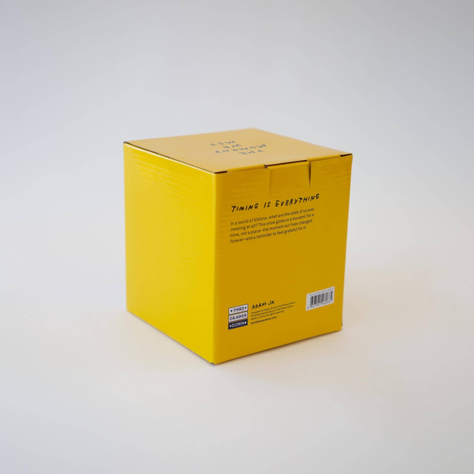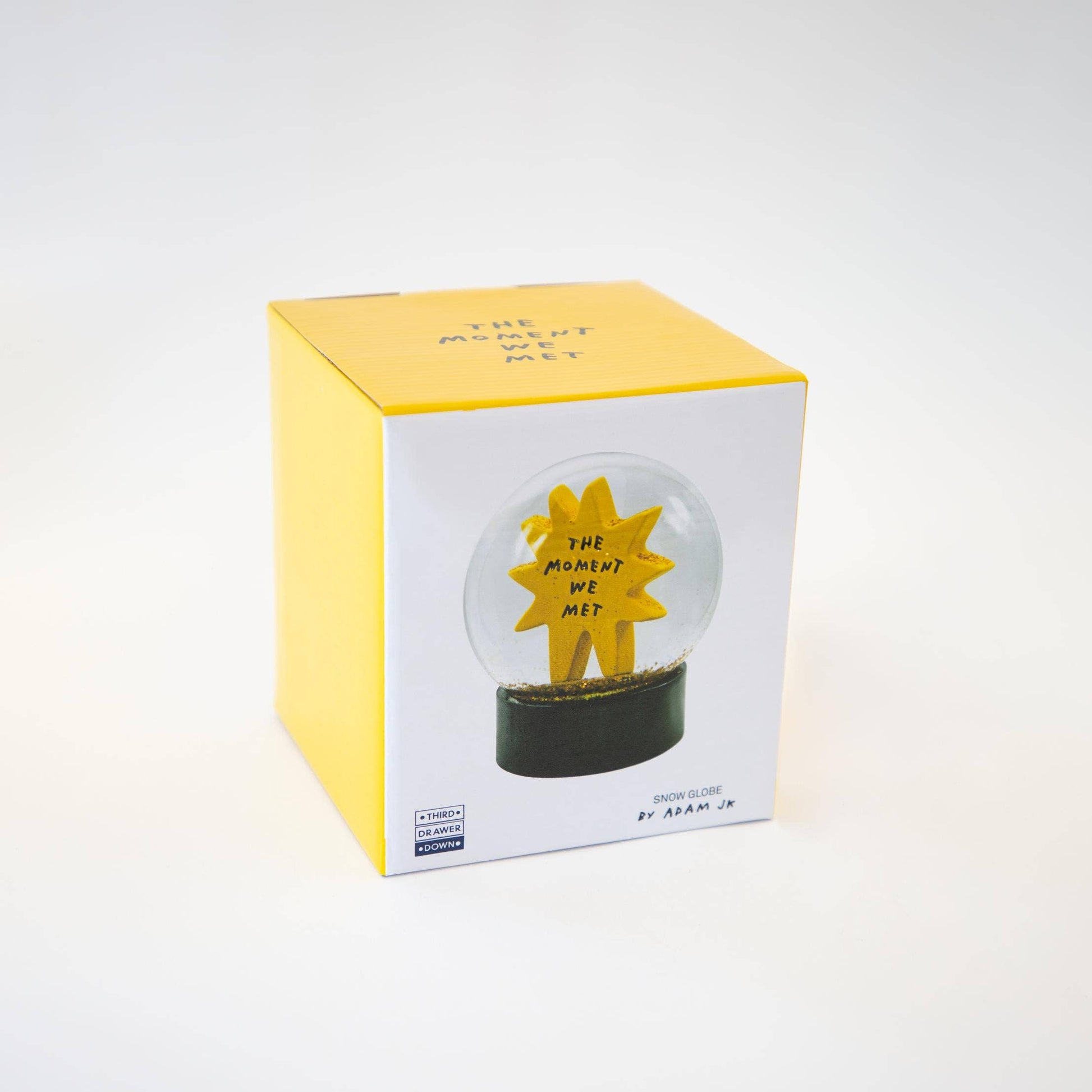 Diese Schneekugel ist ein Andenken für eine Zeit, kein Ort — der Moment, in dem sich unser Leben für immer verändert hat — und eine Erinnerung daran, dankbar dafür zu sein. Über den Künstler Adam J. Kurtz (alias Adam JK) ist ein Designer, Künstler, Autor und Redner, dessen illustrative Arbeit auf Ehrlichkeit, Humor und ein wenig Dunkelheit basiert.