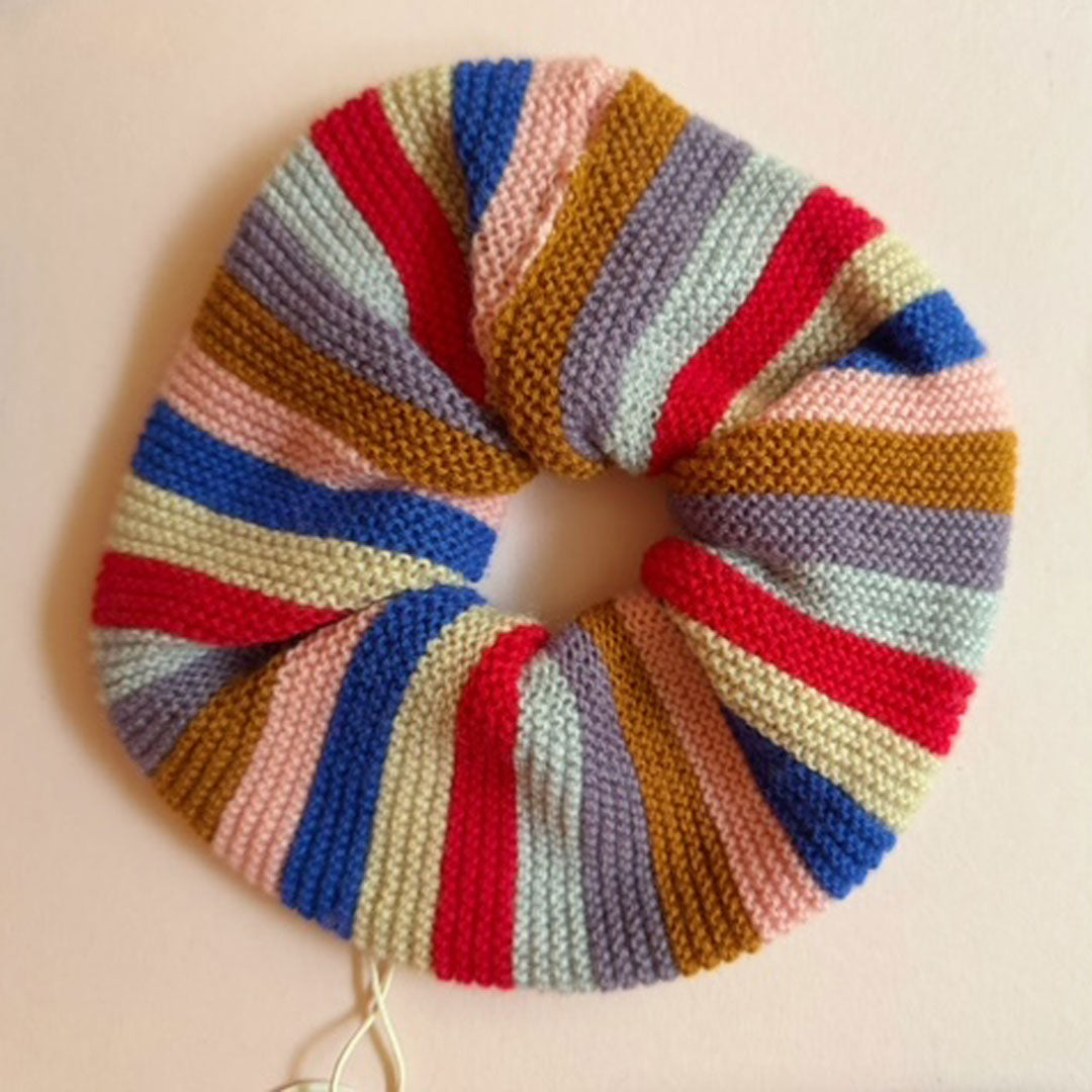 Dieses gestrickte Scrunchie passt perfekt zu jedem Outfit.