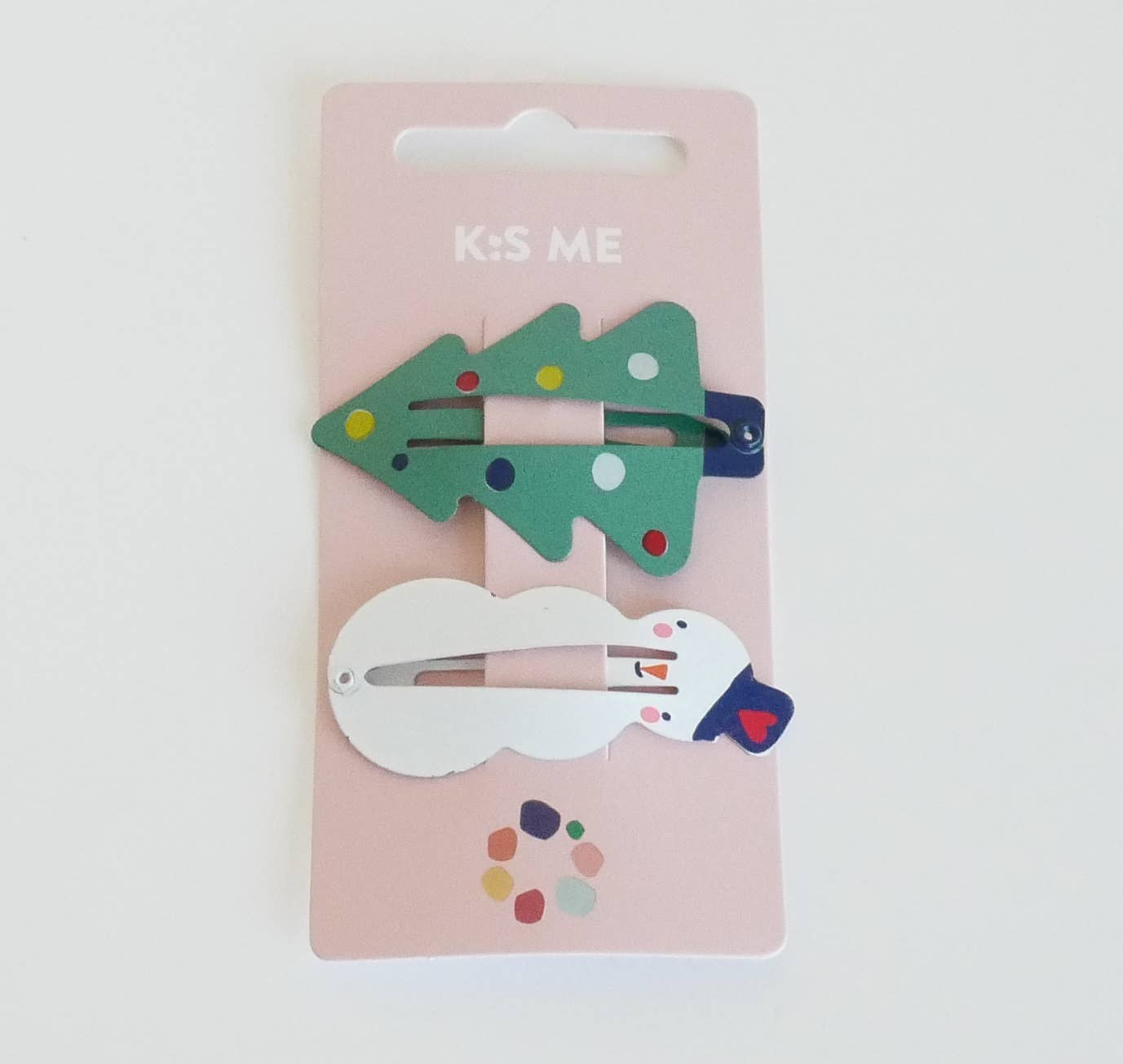 Haarspange Clic Clac - Schneemann + Tannenbaum