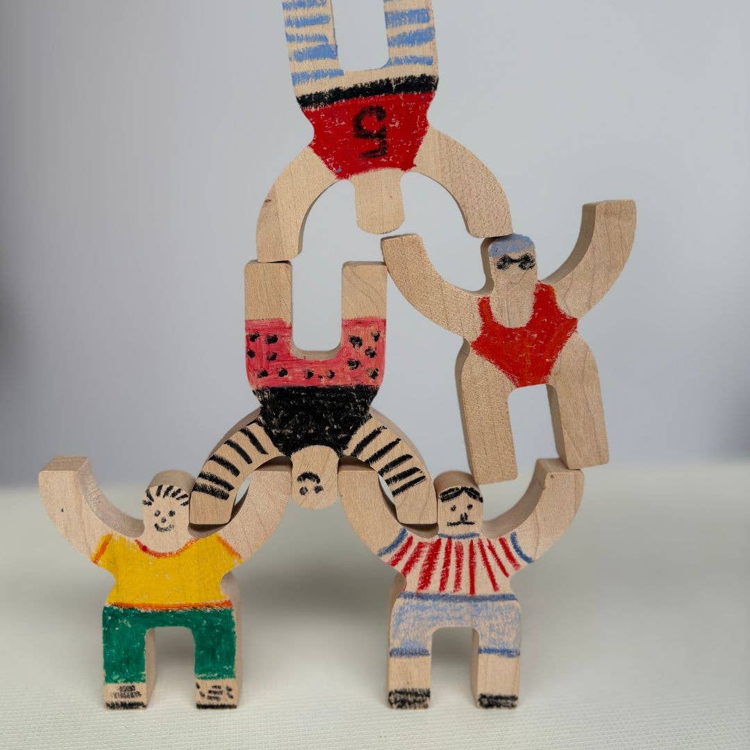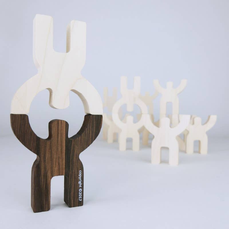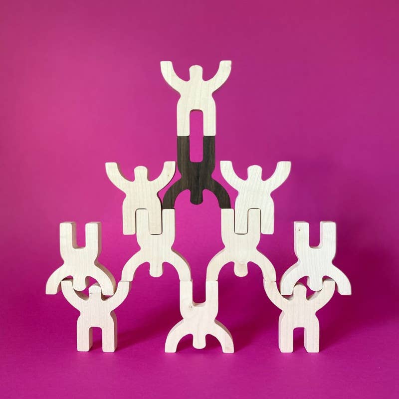 Dieses Set umfasst 15 Holzfiguren, die auf vielfältige kreative Weise gestapelt werden können – auf ihren Füßen, Händen oder sogar Köpfen – je nachdem, wohin die Fantasie eines Kindes führt. Es ist ein Balancespiel, das zum Experimentieren, zur Konzentration und zum Entdecken anregt, wie man stabile und interessante Konstruktionen schafft. Aber Balance ist erst der Anfang. Die Figuren können auch als vielseitige Charaktere im offenen Spiel verwendet werden – als Teil anderer Spielzeugsets, in erzählerischen Abenteuern oder in fantasievollen Szenen.