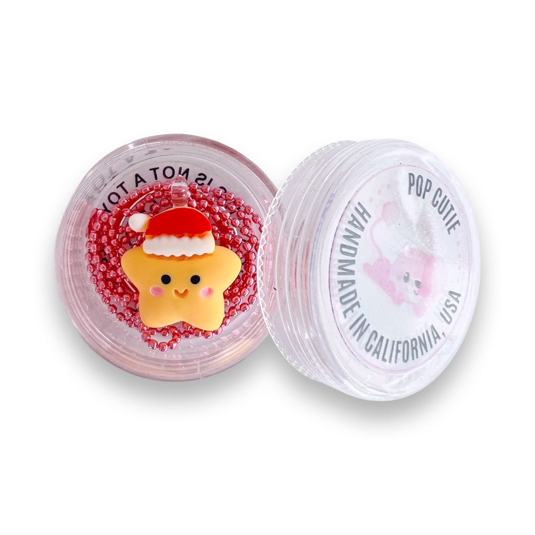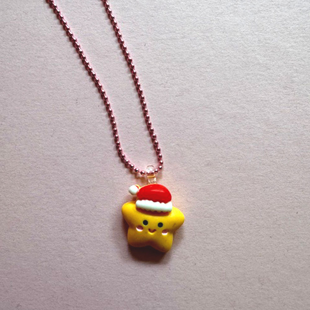Mit einem lustigen und festlichen gelben Sternanhänger mit Weihnachtsmütze an einer rosafarbenen Kugelkette setzt dieses handgefertigte Stück ein stilvolles Statement für die Saison! Außerdem wird es in einer durchsichtigen Geschenkbox geliefert — das perfekte Weihnachtsgeschenk für jede Süße!