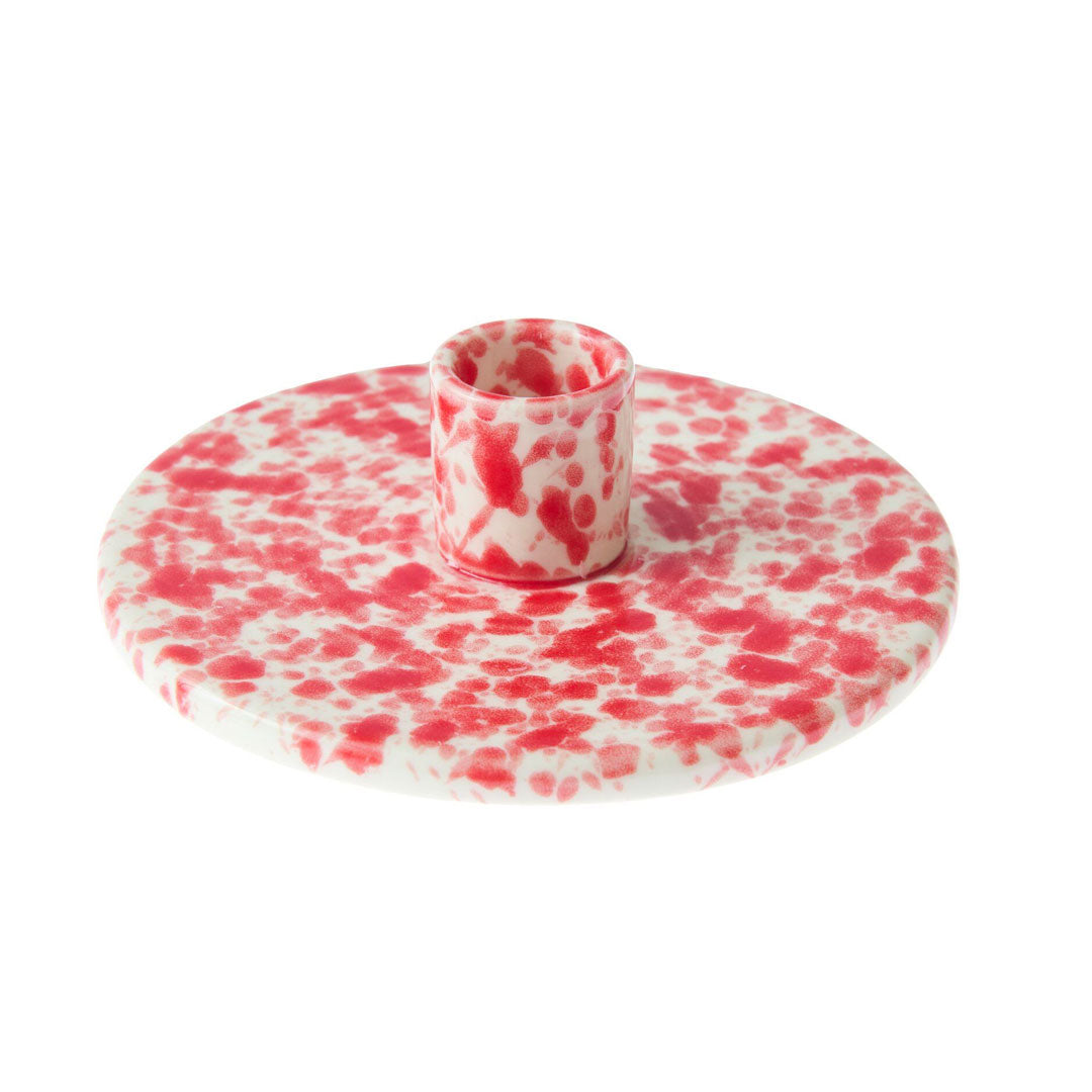 Porzellan Kerzenhalter - rot/weiß gesprenkelt