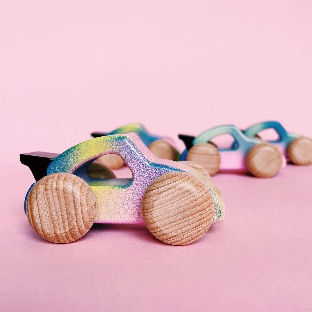 Warum ist dieses Auto so bunt? Candy Car ist ein ganz besonderes Auto. Jedes Exemplar ist handbemalt und hat eine Seriennummer, sodass wir sicher sein können, dass jedes Auto einzigartig ist. Das Spielzeug ist für Kinder gedacht, alle Farben sind sicher und die Größe des Autos ist sowohl für kleine Hände als auch für Erwachsene geeignet, die eine Designer- und einzigartige Form eines Spielzeugs schätzen.