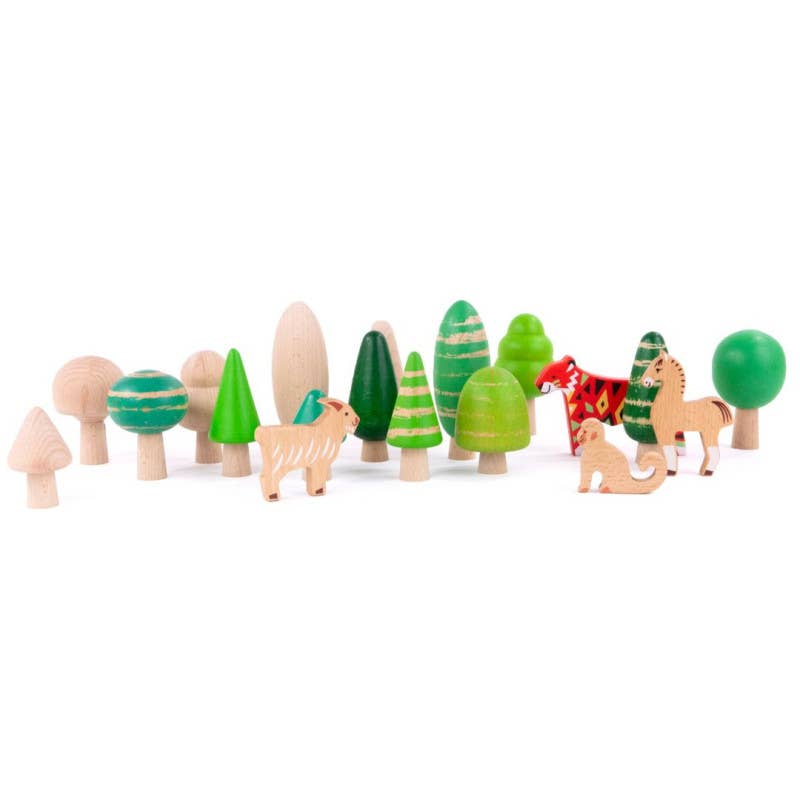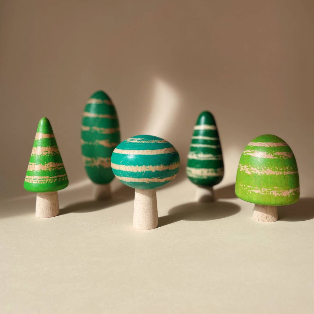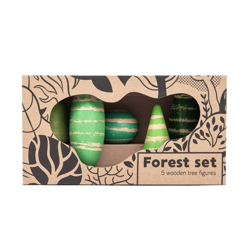 Das Wald-Set umfasst fünf einzigartig geformte Holzbäume in verschiedenen Grüntönen. Dieses minimalistische, aber charmante Spielzeug regt die Fantasie an und verleiht dem Kinderzimmer einen subtilen, natürlichen Touch. Die Bäume können mit anderen Bajo-Sets wie den Waldtieren kombiniert werden, um fantasievolle Waldszenen zu kreieren, Geschichten zu erzählen und Rollenspiele zu fördern.